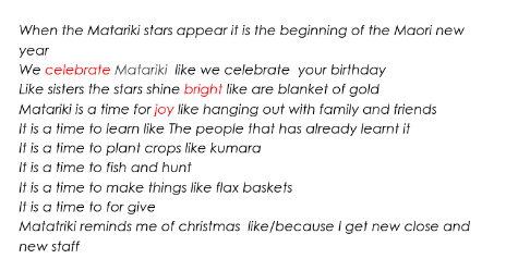 today we learnt about body parts and fibrat stops you having constipation so you can poo properly and not stay in the toilet for long.